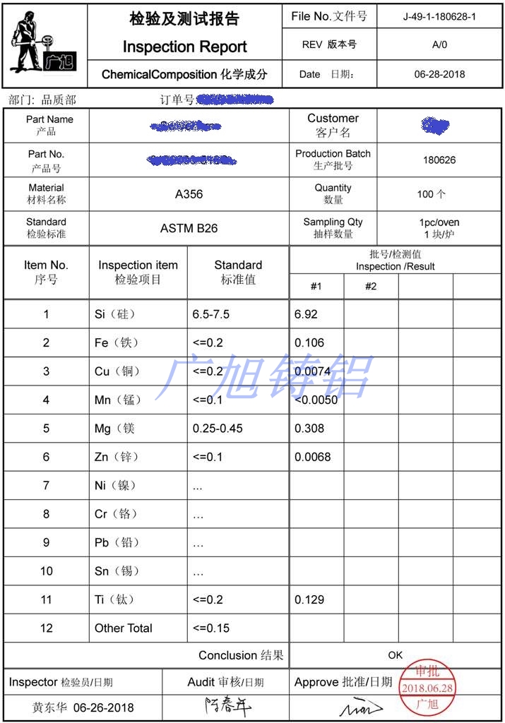 成分檢測:A356-T6